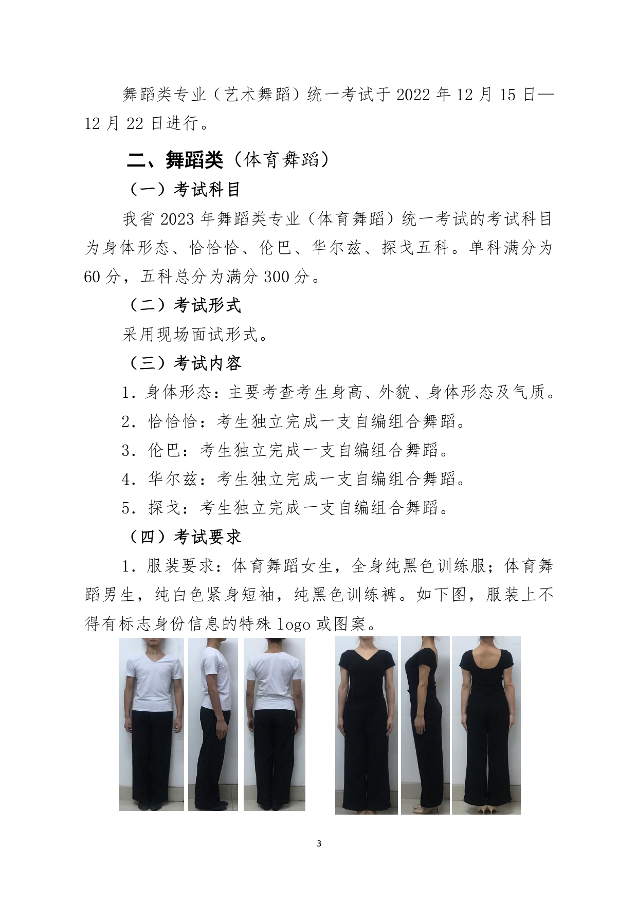山东省2023年普通高等学校招生舞蹈类专业统一考试说明
